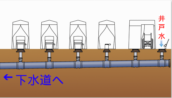この穴の底を井戸水が流れる仕組みです。トイレの仕組みは以下の通りです。